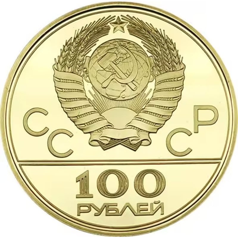Золотая монета 100 рублей с изображением Зала «Дружба», входит в состав серии из шести золотых монет «Игры XXII Олимпиады», выпуск которых был приурочен к проведению Олимпийских игр в Москве.